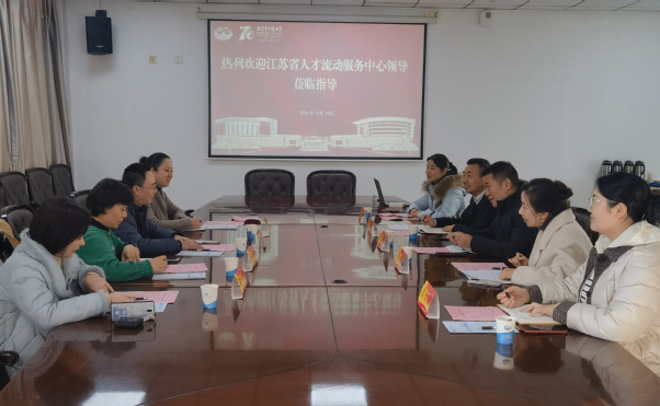 12月24日,江苏省人才流动服务中心人事代理和档案管理部王波部长一行莅临我校,就代理人员档案管理及毕业生就业情况展开深入调研。校人力资源处副处长张雷、党委学生工作部副部长刘云龙、党委研究生工作部副部长沈佳及相关科室同志参加座谈。