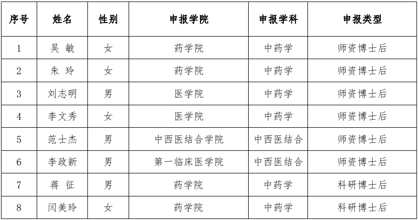 根据《南京中医药大学2025年博士后招收公告》《南京中医药大学博士后管理办法》等文件要求,经个人申报、学院审核、学校把关,我校举行了2025年12月博士后进站面试专家评审会,现将结果公示如下: